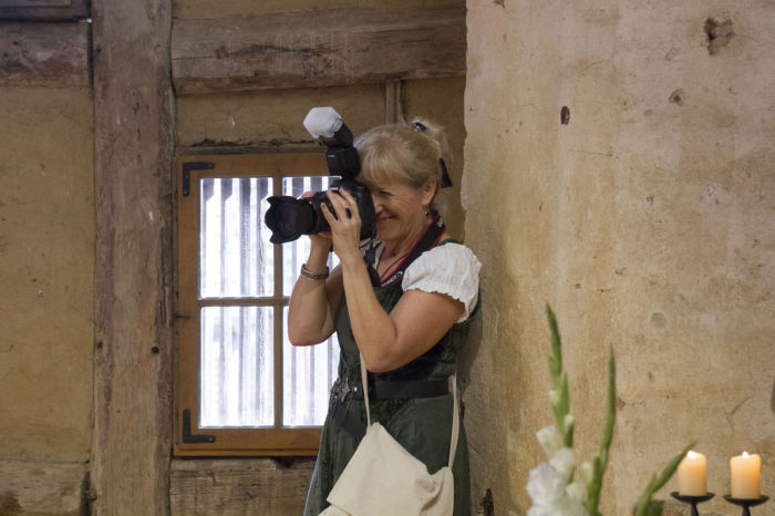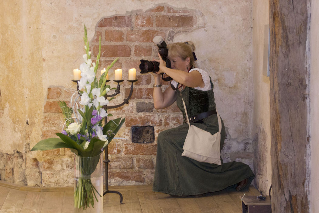 Eine Hochzeitsfotografin steht während der ganzen Zeit unter Spannung und muss das Geschehen aufmerksam verfolgen. Bitte vergesst nicht, sie bei der Verpflegung mit einzuplanen.